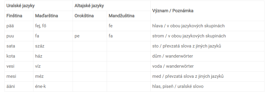 Z této tabulky vyplívá, že jen poslední slovo se objevuje jedině v uralských jazycích, ale i tam je menší rozdíl mezi významem slova „ääni“ a „ének“. První znamená hlas, druhý znamená píseň. Je mezi nimi i fonologický rozdíl a shodují se pouze tři první hlásky těchto slov.V případě, že porovnávací metodu lingvistiky bereme vážně, tak všechny hlásky se musí shodovat podle určitého pravidla a nemůžeme brát do úvahy žádné vyjímky. Existují i ad hoc vysvětlení a vyjímky, ale je to nebezpečné, nebo s ad hoc vysvětlivkami a vyjímkami můžeme všechno velmi jednoduše vysvětlit a s nimi můžeme potvrdit jakýkoliv údaj, tím vznikne pružná teorie, která se může zdát pravdivá. Právě proto, je třeba dávat pozor, aby nebyly vyjímky a abychom jsme nemanipulovali s výsledky, upozorňuje na to Angela Marcantonio.